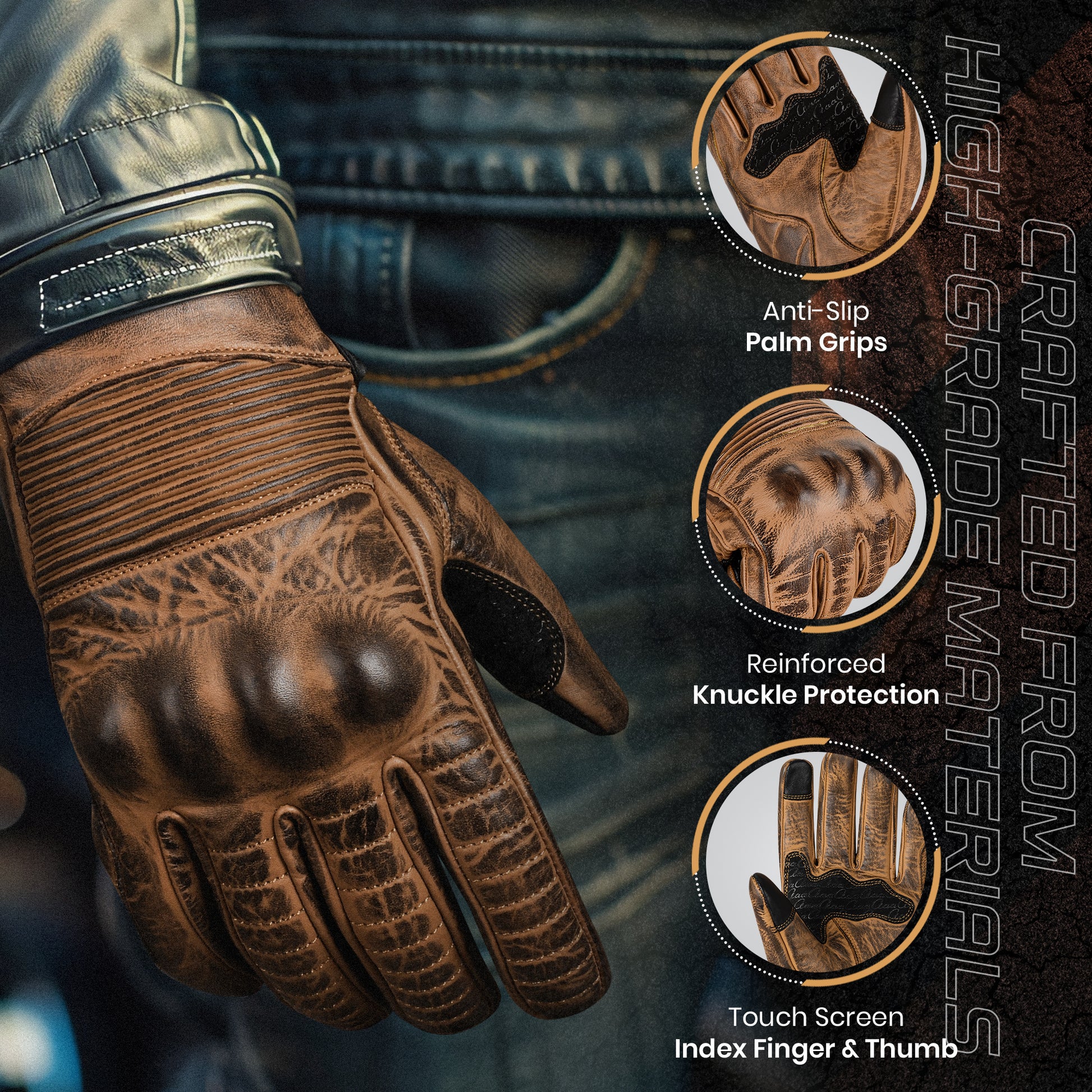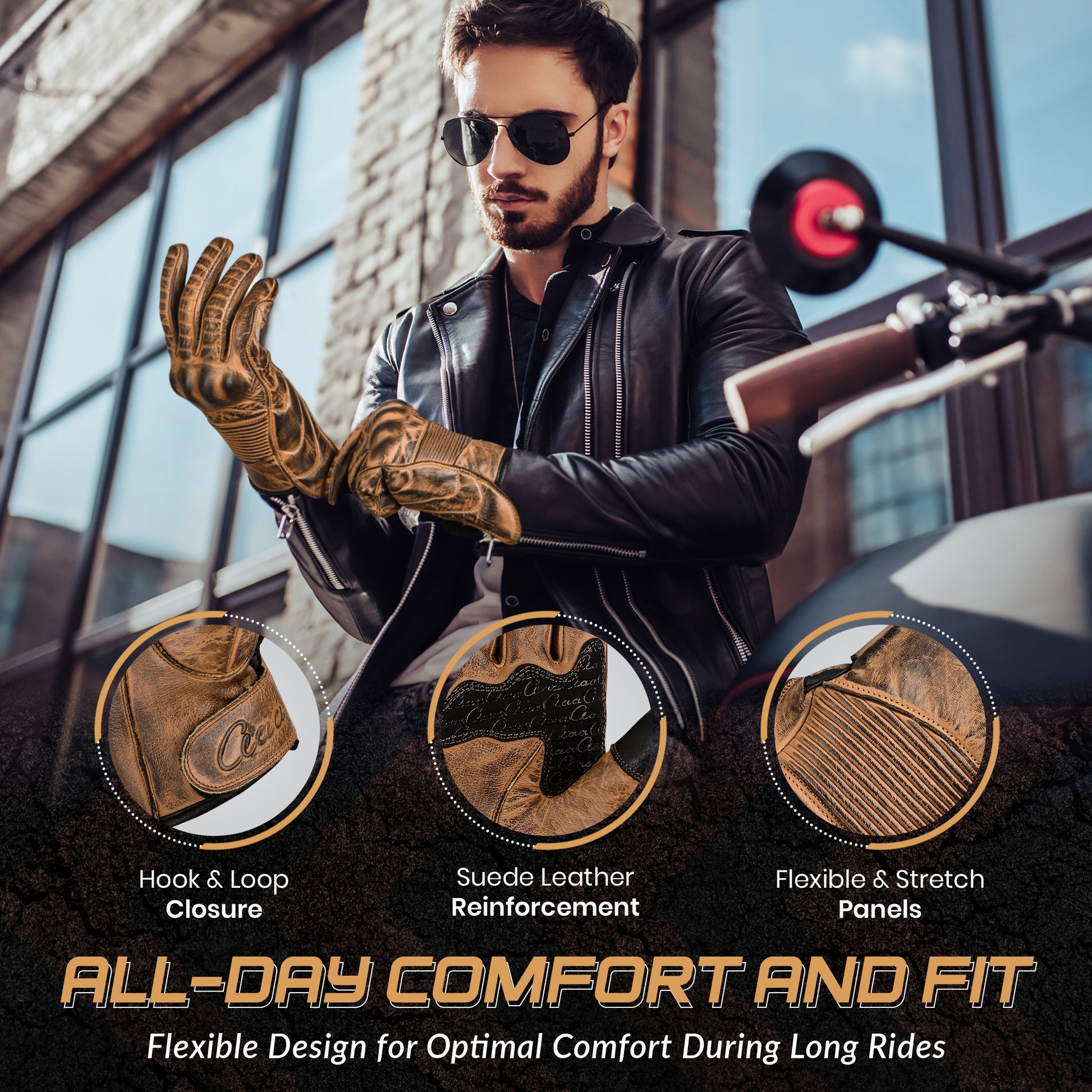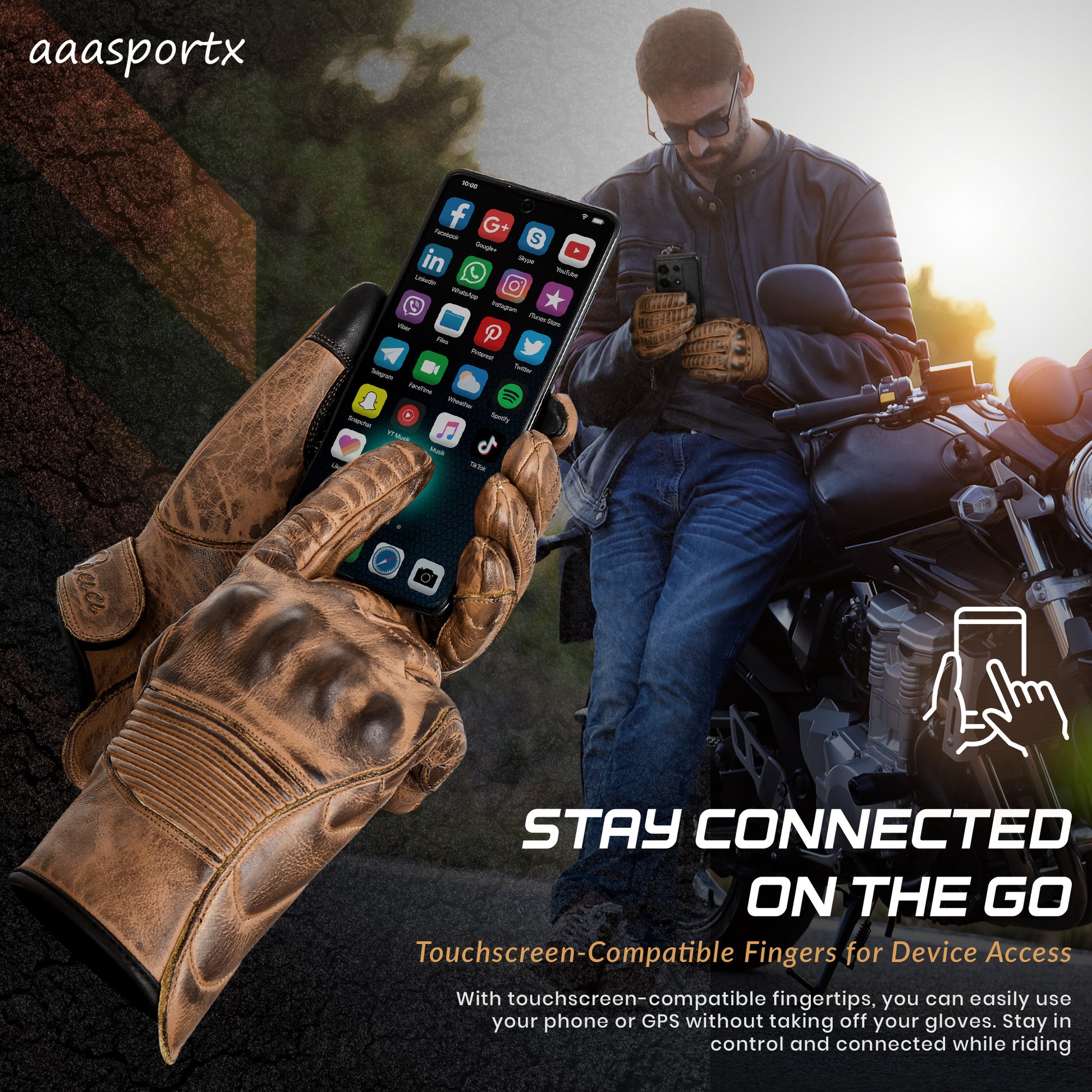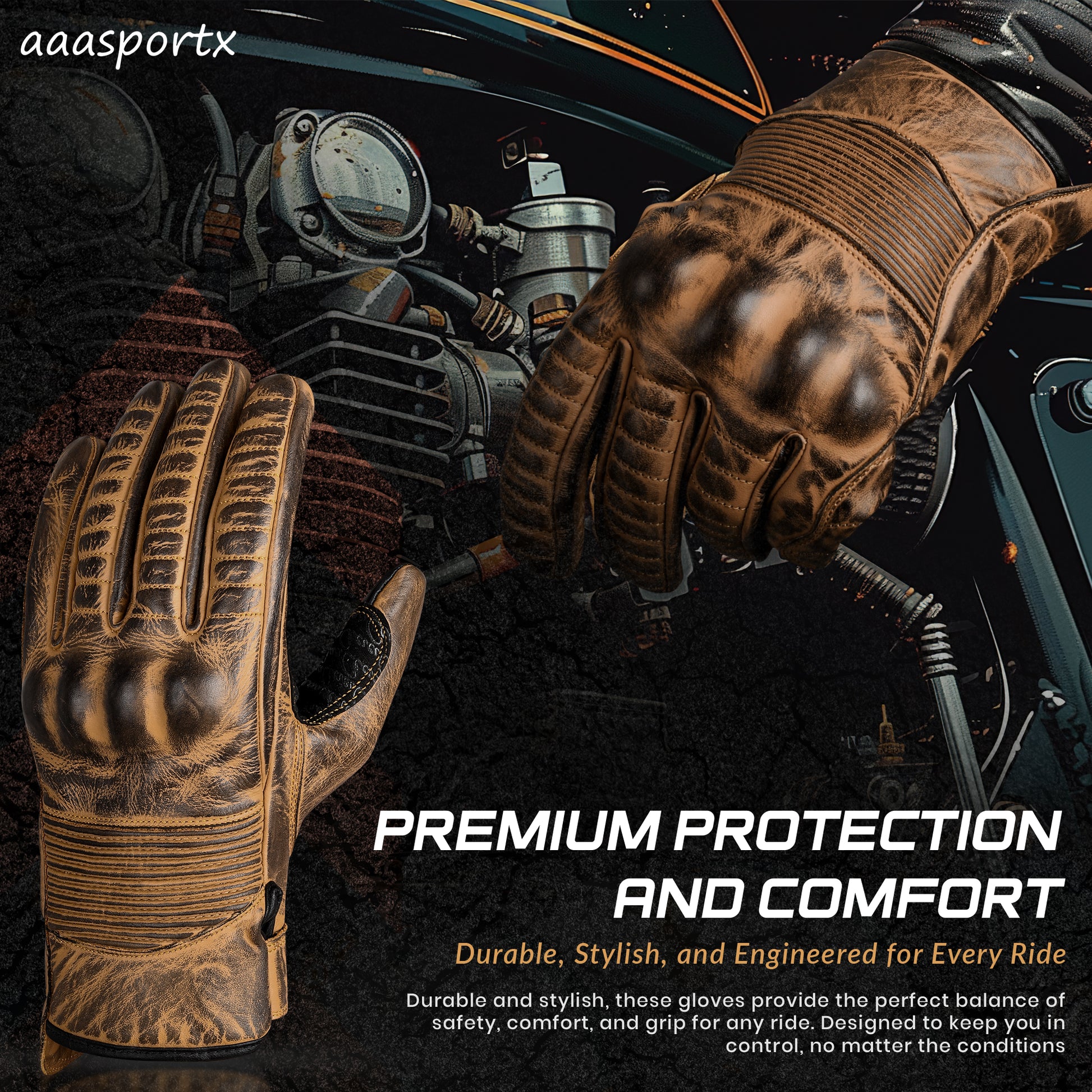 aaasportx |Motorcycle Gloves Men's Leather Motorbike Gloves- All Weather Motorcycle Gloves with Touchscreen and Non-Slip Pads